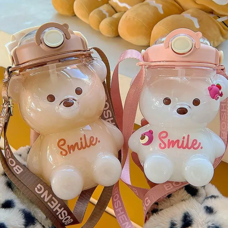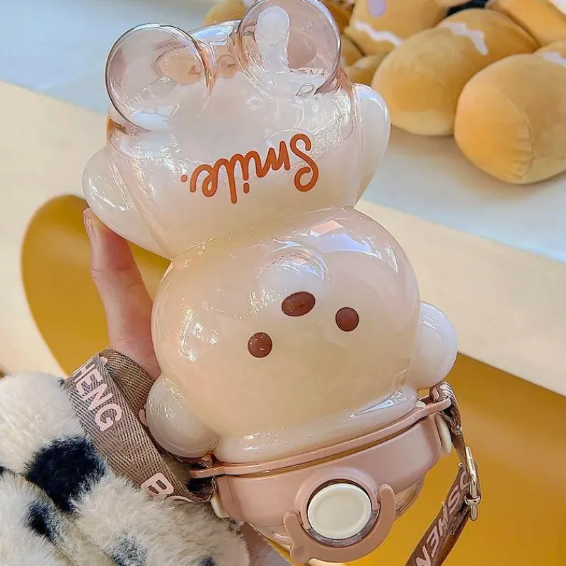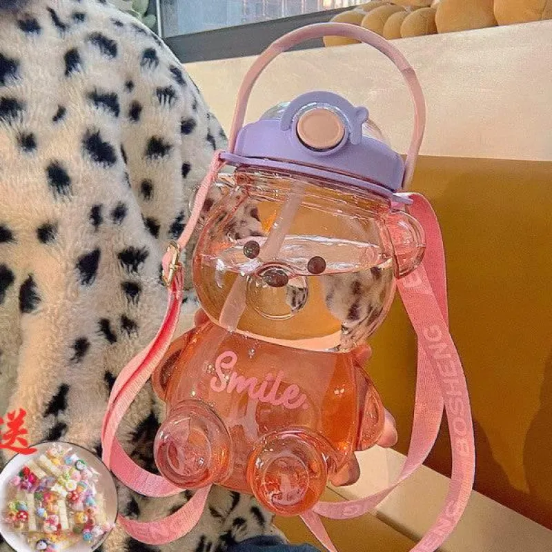 Im Paket enthalten ist eine süße Bären-Wasserflasche mit integriertem Strohhalm, die Sie auf all Ihren Reisen begleitet.
