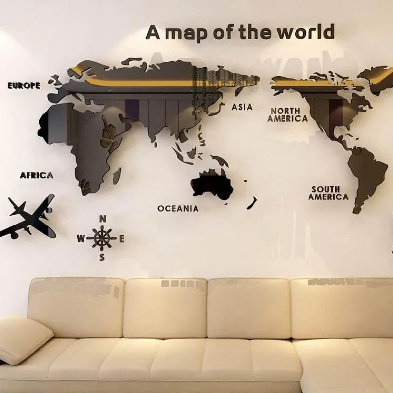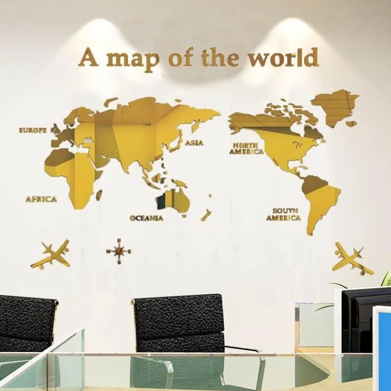 Verwandeln Sie Ihren Raum mit dem Globe Vision Weltkartenaufkleber. Er wurde sorgfältig gestaltet, um eine detaillierte und präzise Darstellung der Welt zu bieten. Dieses Wandtattoo zeigt klare Umrisse von Kontinenten, Ländern und sogar Großstädten und ist somit ein ansprechendes Lernmittel für Kinder, die Geographie lernen. Neben seinem informativen Wert dient es als stilvolles Dekorationsstück und wird garantiert die Aufmerksamkeit Ihrer Gäste auf sich ziehen.
