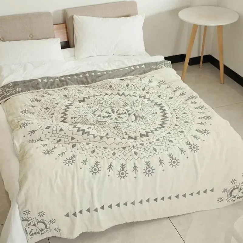 Entdecken Sie die Nordic Cotton Throw Blanket, eine vielseitige und atmungsaktive Steppdecke, die Ihren Wohnräumen einen Hauch von Eleganz verleiht. Diese wunderschön gefertigte Decke aus 100 % hochwertiger Baumwolle ist ideal, um den Komfort und Stil Ihres Schlafzimmers oder Wohnzimmers zu steigern.