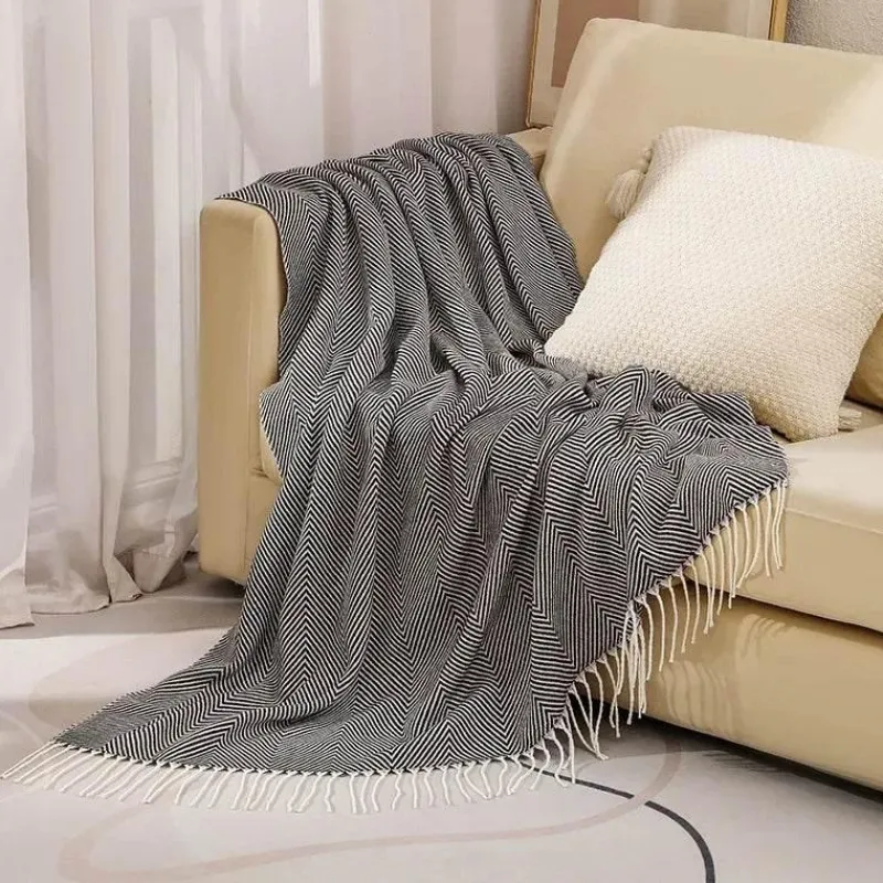 Wir präsentieren die Nordic Stripes Überwurfdecke – die perfekte Ergänzung für mehr Komfort in Ihrem Wohnraum. Hergestellt aus 100 % Acrylgewebe bietet diese Decke erstklassige Qualität und außergewöhnlichen Komfort. Ihr schickes Boho-Design wird durch ein faszinierendes geometrisches Muster ergänzt und macht sie zu einem stilvollen und zugleich funktionalen Accessoire für Ihr Sofa oder Schlafzimmer.