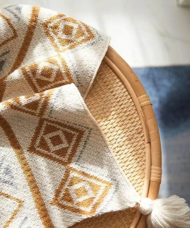 Spüren Sie die einladende Weichheit und Wärme dieser hochwertigen Garndecke. Sie wurde sorgfältig in einer klassischen rechteckigen Form entworfen und ist ideal für Erwachsene. Das elegante geometrische Muster verleiht ihr einen raffinierten Touch und macht sie zu einem vielseitigen Accessoire für jede Jahreszeit, von der Frische des Frühlings bis zur Frische des Herbsts.